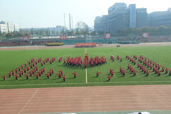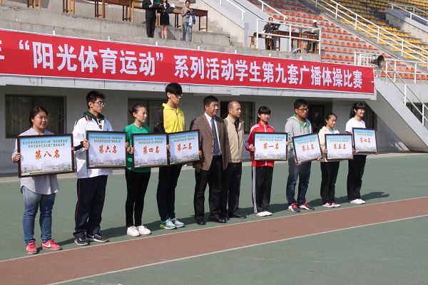 10月26日上午,秋高气爽,阳光明媚,我校大学生第九套广播体操比赛在北校区田径场隆重举行。参加本次广播操比赛的共有19个院(系)代表队的2800多名学生。