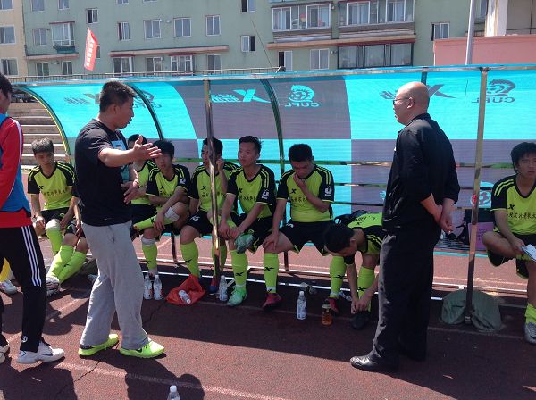 中场休息的时候,体育部副主任马文军对大家在比赛中表现出来的精神面貌表示了肯定,主教练常辉对大家顽强的防守态度进行了赞许,也分析出我们的处境,必须抓住为数不多的机会进行防守反击。果然下半场开始后,我们滴水不漏的防守让对方的队员在场上有些气馁,情绪也开始急躁,逐步我们有了一些进攻的机会,在下半场开场15分钟后,前锋宫小飞接抢断传球连晃两人,单刀侧面球门射中本场比赛唯一一粒进球。落后的沈阳航空航天大学又发动了猛烈的反攻,虽然我们的体能已经下降到极限,但是队员们都咬紧牙关一次次化险他们的进攻,并加强了对个人进攻的紧逼,一次次从对方脚下把球抢断过来,化被动为主动,一直将领先优势保持到终场哨音响起。