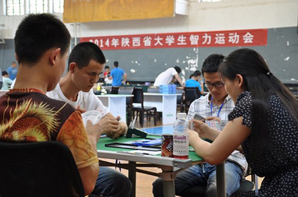 2014年陕西省大学生智力运动会于6月7日至8日在西安工业大学举行,共有23所大学的代表队参加了比赛。按照运动会项目设置,共设围棋、象棋、国际象棋、国际跳棋、五子棋和桥牌比赛。