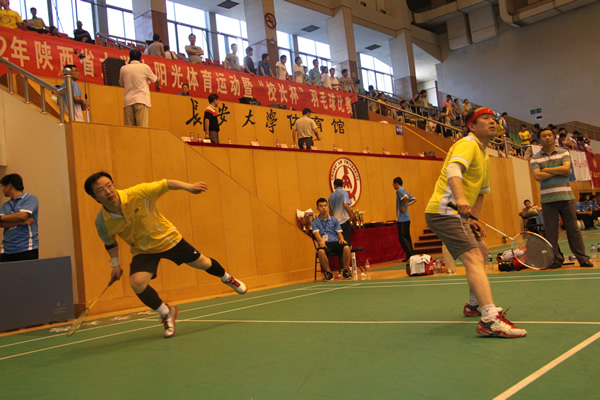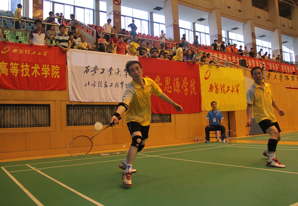 6月9-10日,2012年陕西省大学生暨“校长杯”羽毛球比赛在长安大学举行。我校11名学生队员参加学生组比赛;副校长张雅林和钱永华的两对双打参加校长组比赛。