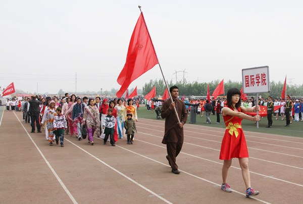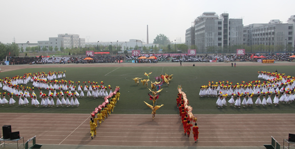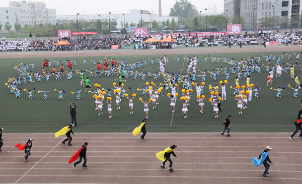 在雄壮的《运动员进行曲》中,裁判员方队和23个学院的运动员方队依次入场。运动员代表郭凯雨、裁判员代表张蓉婧分别在开幕式上宣誓,留学生代表那必在开幕式上发言。开幕式上还进行了精彩的文艺表演。团体舞《感谢春天》呈现出一幅春意盎然、欣欣向荣的和谐景象,体现出生态、环保、健康、阳光理念;武术表演《中华武魂》展现了当代大学生意气风发、自强不息的精神风貌;啦啦操表演《活力无限》展现了莘莘学子奋发向上、活力四射的青春风采。