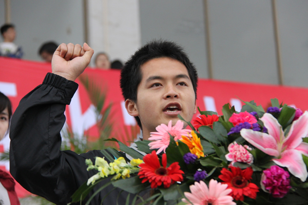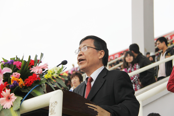 4月19日上午,北校区田径场气球高悬、彩旗飘扬,乐曲回荡、人声鼎沸。我校2012年田径运动会在此开幕。校党委常务副书记王万忠宣布运动会开幕,校党委副书记徐养福致开幕词,校党委副书记马建华主持开幕式。