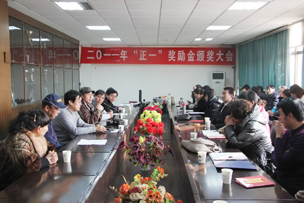 1月5下午,体育部举行了2011“正一奖励基金”颁奖仪式,全体教职工参加了颁奖仪式。“正一奖励基金”捐赠人王正毅先生和我校校友会常务副秘书长胡安劳同志应邀出席仪式。