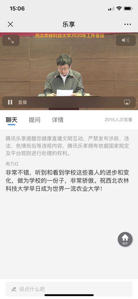 他指出,2019年是学校建校85周年暨合并组建20周年,也是学校事业发展极不平凡的一年。一年来,各项工作取得的成绩,都是全校师生员工凝心聚力、开拓创新、不懈奋斗的结果。吴普特从以立德树人为根本、推进人才培养质量提升,坚持两个发展方向、高质量推进科技工作,积极实施三大战略、鼎力支撑“双一流”建设,切实履行四大学科使命、提升学科核心竞争力,以及争做五个标杆、加快世界一流农业大学建设等五个方面谈了自己的思考和落实意见。并就做好今年有关重点工作进行了具体部署:一是抓实疫情防控工作,二是抓实治理体系与治理能力现代化建设,三是抓实“十四五”规划编制,四是抓实第五轮学科评估,五是抓实《共建意见》落地落细,六是抓实未来农业研究院建设,七是抓实“双一流”建设“三五工程”,八是抓实条件保障建设。