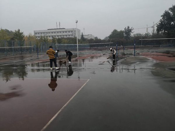 10月5日,我校2020年大学生排球联赛如期开赛,本次比赛共有来自我校21所院系204名运动员参赛。但近日阴雨连绵,激战正酣的比赛不得不因为天气因素打打停停。本周末早晨,秋雨如期而至,下了一阵又停了下来。看着满地的积水正在犹豫下午比赛是否正常进行的时候,生命排球队全体队员带着拖布、扫帚来到了比赛场地,义务的为大家清扫场地积水。这一幕让我回想起在去年排球联赛中,比赛结束后,场地周边矿泉水瓶、一次性纸杯随处可见,也是生命学院代表队队员自发的拿着垃圾袋为大家清扫场地。