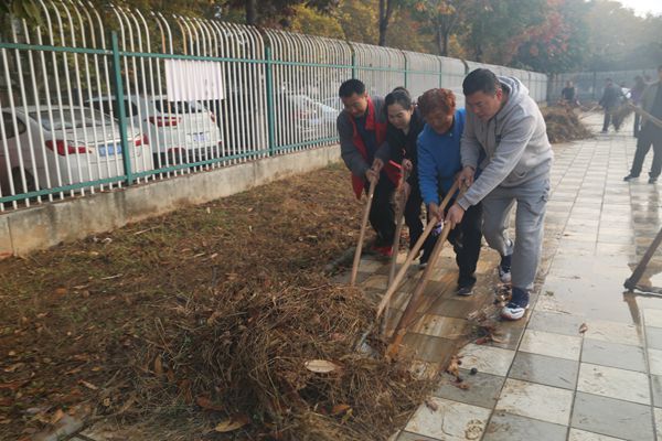 11月7日上午,体育部党总支组织全体教职工在南校区游泳池开展志愿服务卫生清理工作。
