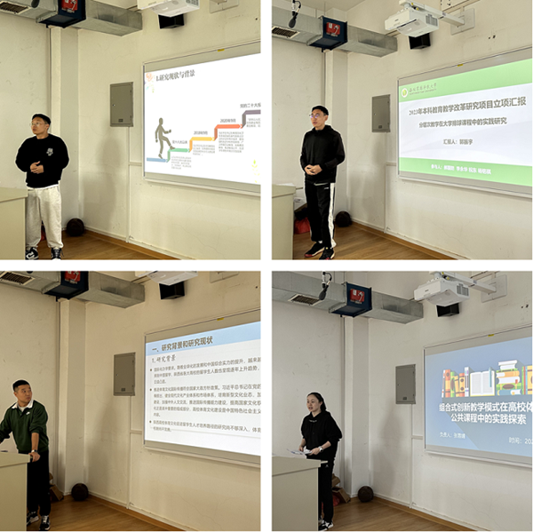 根据申报要求进行6分钟的PPT汇报,每个项目主持人从项目研究现状及背景分析入手,对研究内容、研究目标、要解决的教学问题、采取的方法及项目的主要特色进行了详细阐述,同时对研究方法、技术路线和推广价值进行了说明。