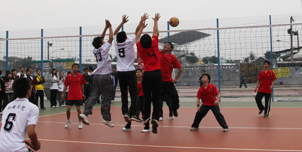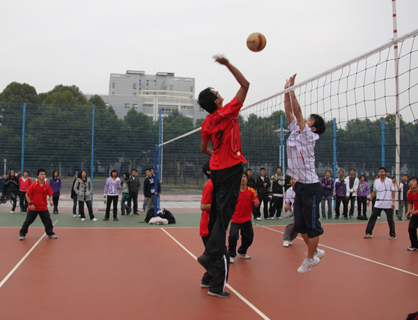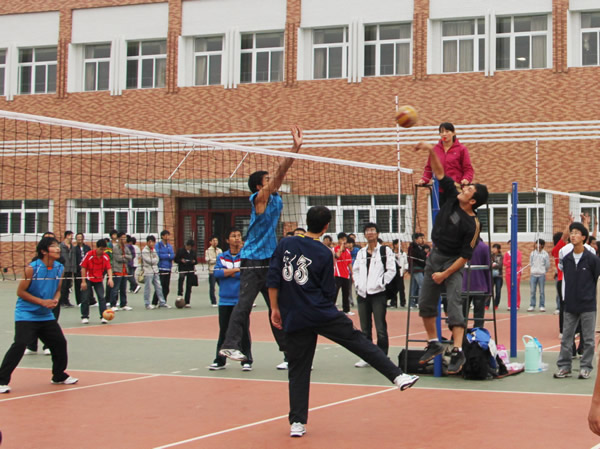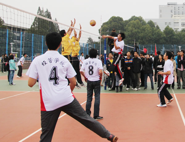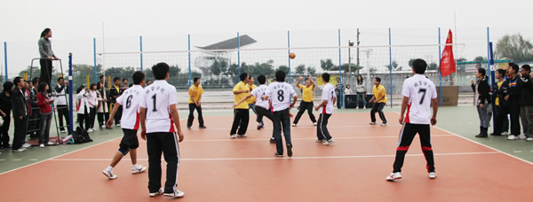 院系间大学生男子排球开赛(图)