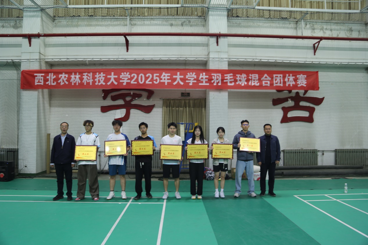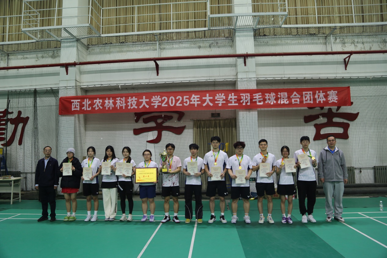 历时四天的激烈角逐,西北农林科技大学2025年大学生羽毛球混合团体赛于近日在体育馆圆满落幕。本次比赛吸引了全校23个学院的代表队共322名运动员踊跃参与,最终,动物科技学院凭借出色发挥,摘得混合团体赛桂冠,水利与建筑工程学院获得亚军,季军则由化学与药学院获得。获得第四至第八名的学院依次为:机械与电子工程学院、经济管理学院、风景园林艺术学院、食品科学与工程学院、信息工程学院。园艺学院和国际学院荣获体育道德风尚奖。