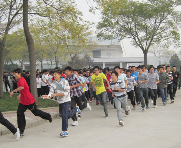 10月28日上午,动医新生越野赛在北校区举行,我院12级新生全部参加比赛。上午8点半比赛准时开始,经过近一个小时的角逐,最终郭新艳、张梦、林晓、魏婷婷、娄银莹获得女子前五名,张益宁、侯奔、陈军、黄竹涛、张锐获得男子前五名的成绩。团体总分评比中,五班、三班、四班分别获得团体总分前三名。