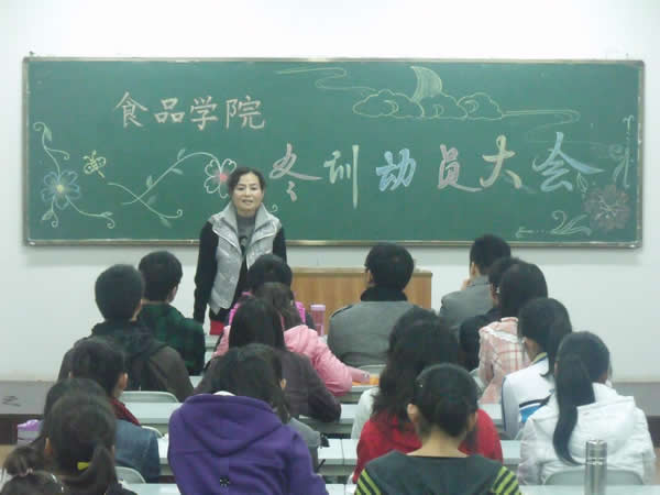 11月3日晚,由食品学院体育部组织的2011冬训动员大会在3212教室举办。食品学院体育辅导员孟月婷、李永华和2011级政治辅导员刘杰以及食品学院体育干部和冬训选手们参加了本次会议。