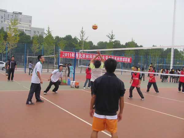 9月22日下午,我校2011年院系间排球赛在北校区排球场正式开赛。动医学院首战外语系,经过四十分钟的比赛,动医男排以25:5;25:14;25:12直落三局,战胜外语系,首战告捷。